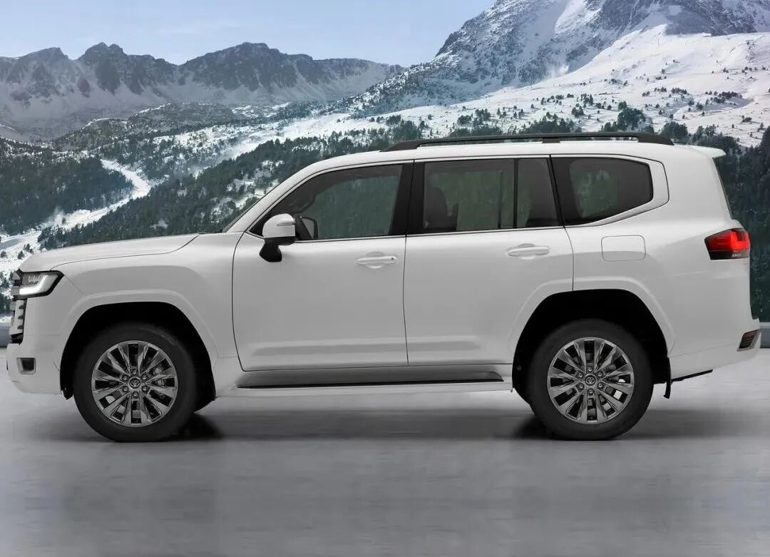 车身侧面依旧延续了兰德酷路泽车系的高大造型,不过C柱后方平直的车尾让人不禁想起另一款经典日系越野车——途乐。硕大的轮子以及夸张的悬挂行程则是这台车越野能力最基础的保证。在尺寸方面,新车的长宽高分别为4950/1945/1980mm,轴距则是与老款保持一致,依旧是2850mm,虽然整车看起来魁梧,但是实际上的“占地面积”甚至要比不少中大型轿车还要小。