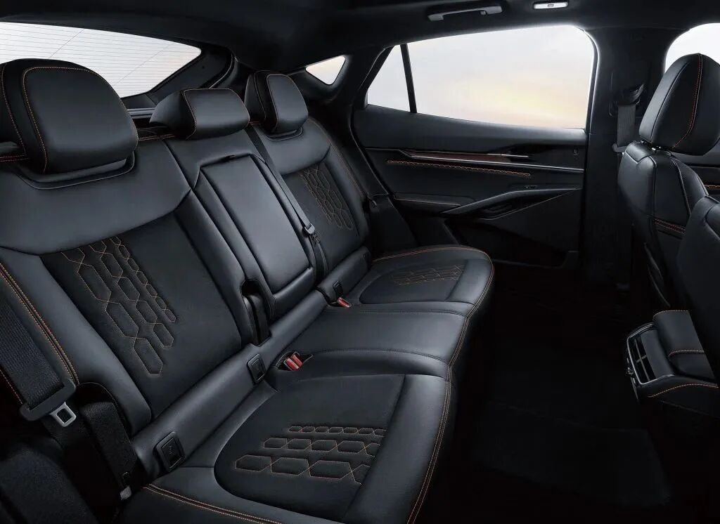 除了分体式大灯以外,EVOS还将中网镀铬元素换成了熏黑材质,同时还增加了一丝橙色的点缀来强调这款车型的运动属性,据了解,这个鳞片式的中网还带有活动功能,能在车辆解锁的时候产生一种类似“呼吸”的视觉效果,同时在行车时也能充当主动进气格栅的作用。