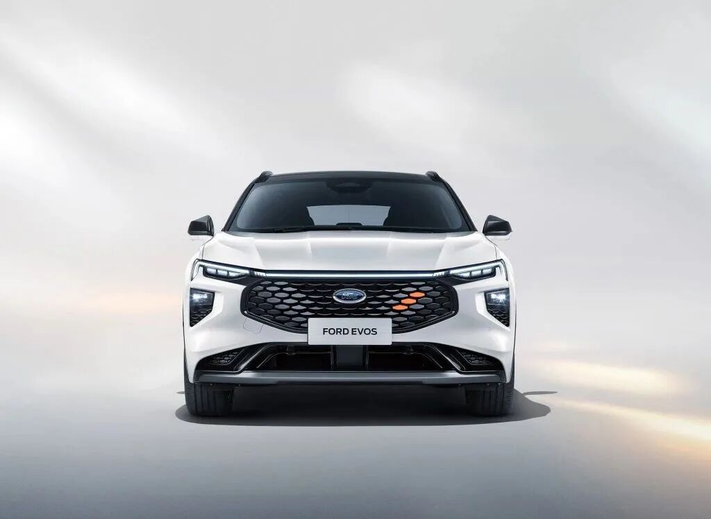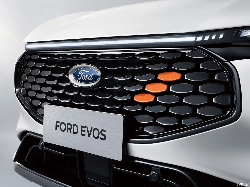 在外观上,EVOS用上了福特目前在国内大力推广的中国前脸,大中网+分体式的大灯是这套设计语言最大的特点,类似的设计在江铃福特领裕以及全新换代的福睿斯都能看到。