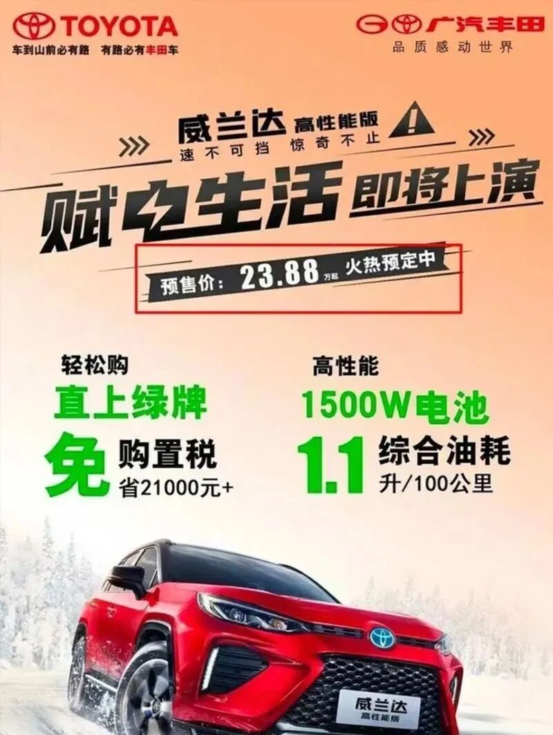 根据今日网上流传出的一份预售价海报,威兰达高性能版预售价将为23.88万元,价格并不会比普通混动版本高出太多,但是在它性能上却要强上不少。
