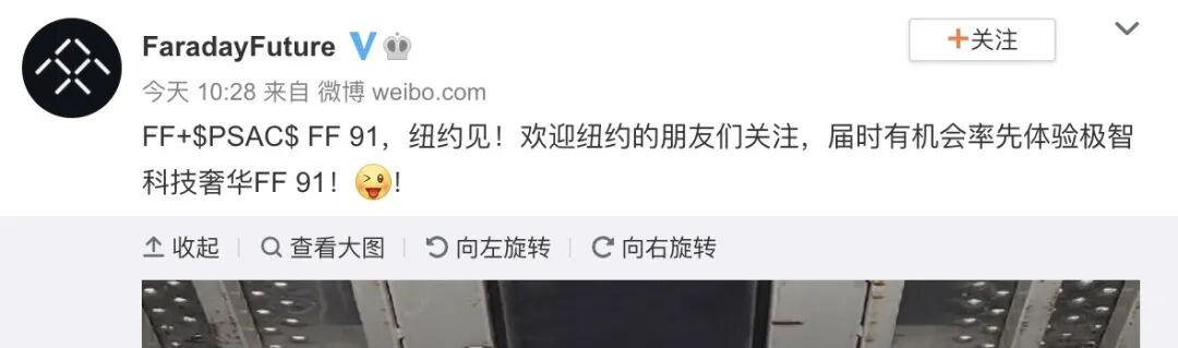 而当时间来到5月份,他们又在微博上发了一条让人浮想联翩的动态:FF 91,纽约见!