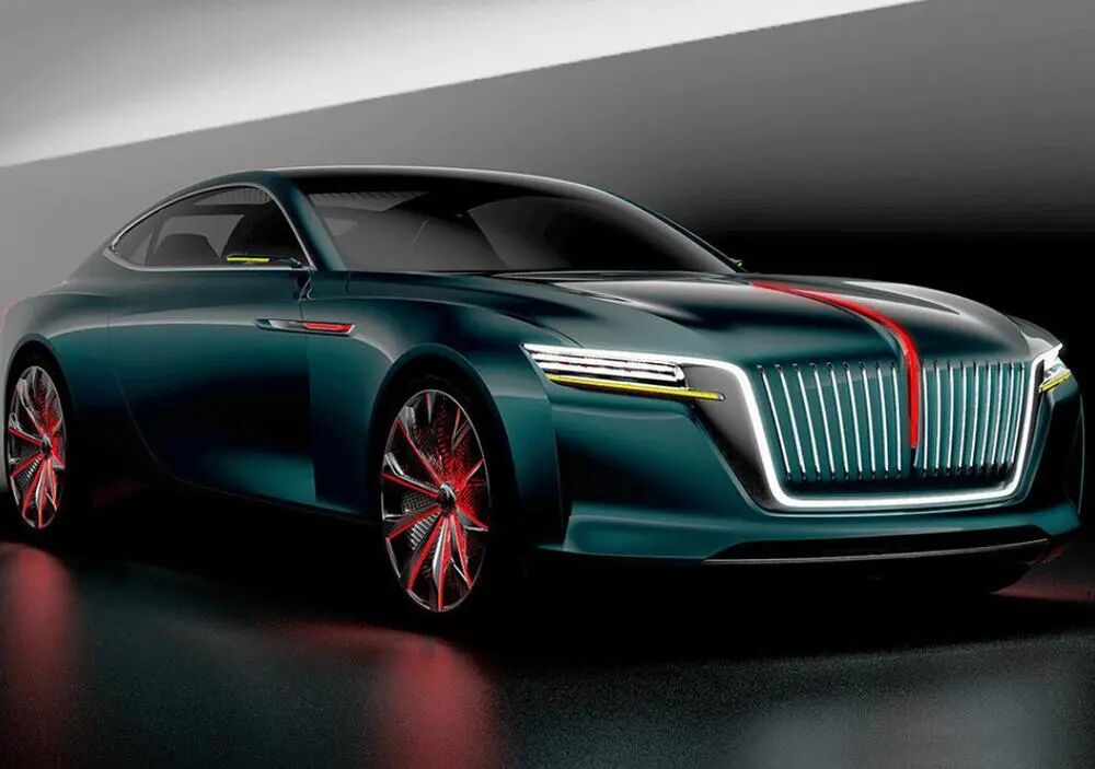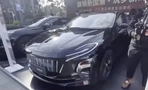 从网上流出的一场红旗要客品鉴会上的照片中,我们还能够看到这款新车的庐山真面目:这款新车一扫以往红旗循规蹈矩的风格,前脸设计异常大胆,机盖上方是两条祥云状的日间行车灯,而分体式大灯组则是被安放到了保险杠的两侧,全封闭式的前脸也预示了这将会是一台纯电动车型。