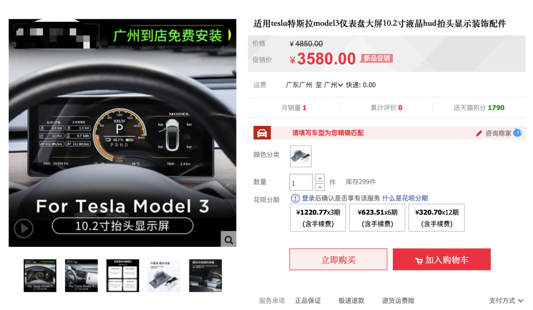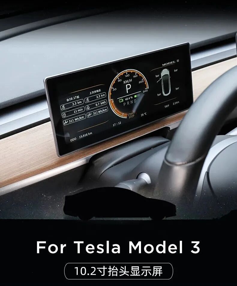 这样的设计确实是科技感十足,但是对于那些看惯了传统汽车仪表盘的人来说,要将视线放到中控上才能看到时速,多少还是有点别扭,而这也催生了特斯拉的另一个热门改装项目——增加仪表盘。
