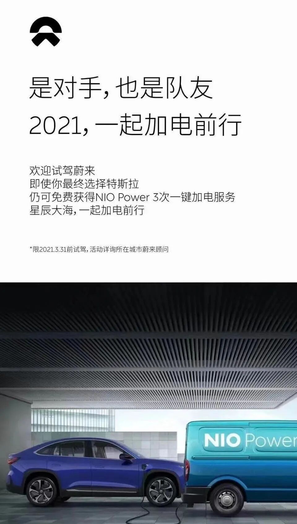 而对于这样的“降维打击”,蔚来方面所能作的回击多少有些无力:只要你试驾过蔚来,就算你最后买的是特斯拉我们也会给你免费提供3次“奶妈车”服务。此举所释放的信号非常明显,就是想通过试驾尽可能地“挽回”更多客户,毕竟就算我真的要买特斯拉,为了这三次免费加电服务,我也会考虑去蔚来看一看。