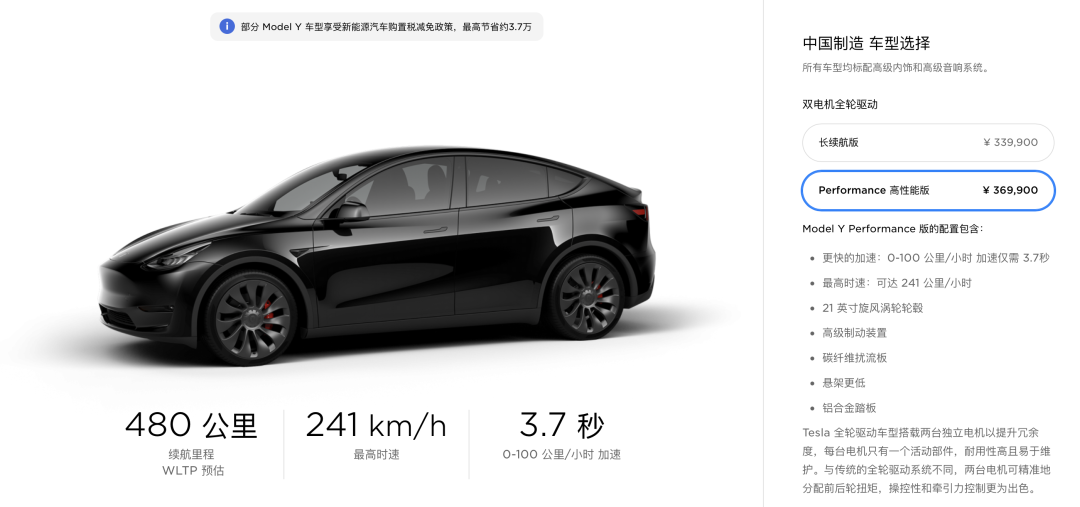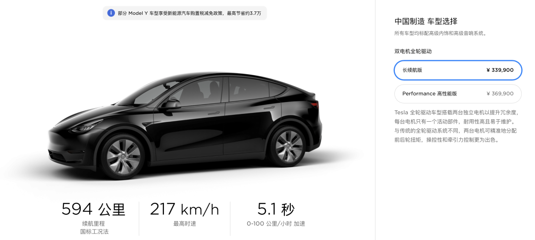 全新Model Y正式上市,长续航版从原价48.8万直降14.81万,定价33.99万元,NEDC续航594km。高性能版则是从原价53.5万直降16.51万,定价36.99万元,WLTP续航480km,百公里加速3.7秒。
