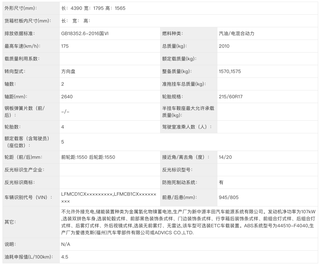 根据官方信息,ALLION最快将于今年3月底正式上市,比隔壁广汽丰田的姊妹车型凌尚要早上不少,而在近日,我们在工信部的网站上,也发现了这台新车的申报信息。