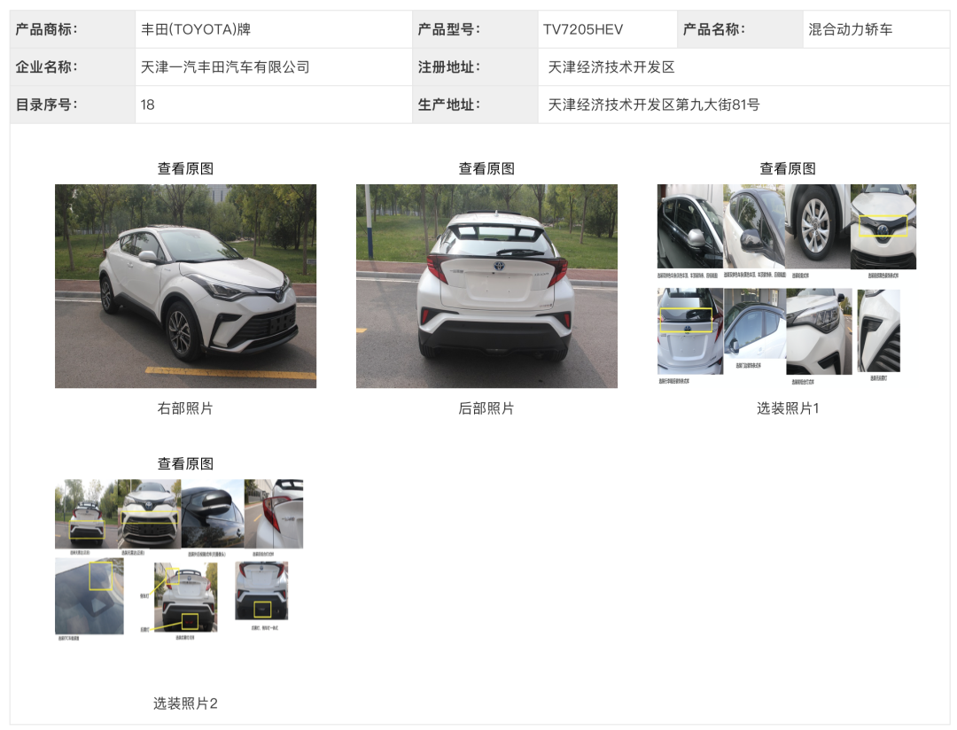 除了轿车以外,一汽丰田这次还一同申报了奕泽的改款车型,除了常规的改款以外,丰田这次还为这款个性小型SUV带来了混合动力版本。