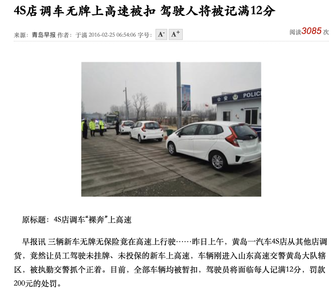 其实无论是4S店亦或是驾驶员都知道,驾驶这样无牌无保险的车辆上路是属于严重的违法行为,但是长久以来大家仍然对这种做法“乐此不疲”,只为省一点拖车费用。