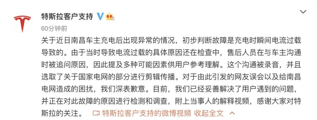 在甩锅不成功,且群情汹涌的情况下,特斯拉在今天早上紧急发布了一则声明,并让该位售后人员出面澄清道歉。
