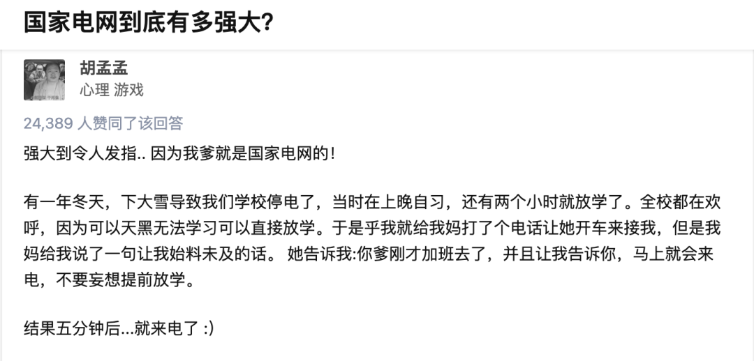 从80年代,全国缺电1200万千瓦时,就连首都北京时不时计划性停电,到如今电网全国覆盖率达到99.03%,国家电网给全社会做的贡献可谓是有目共睹。仔细想想,除去正常的检修或者故障以外,大家已经有多久没有经历过以往的区域性停电了?即便是有停电发生,国家电网在恢复供电方面也能做到极高的效率。