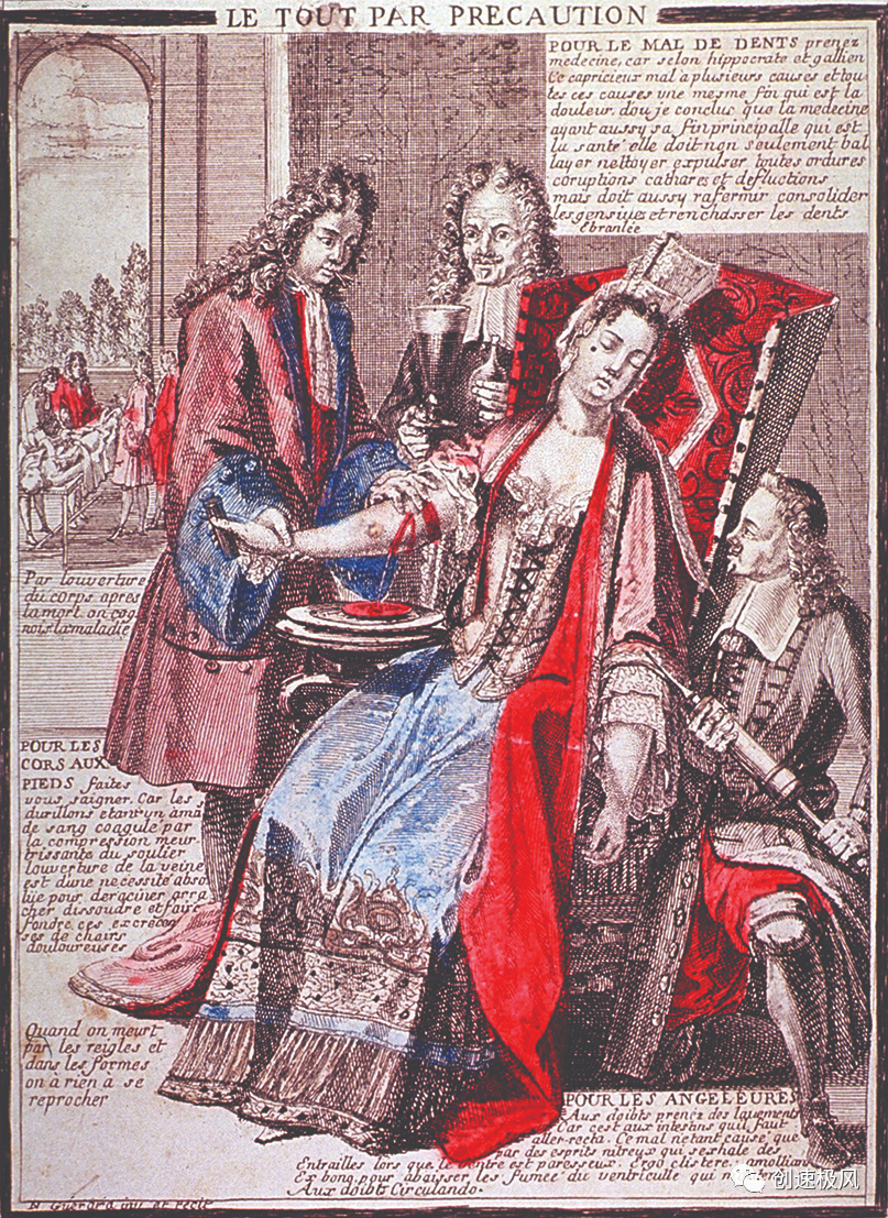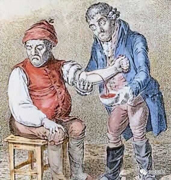 当时放血疗法风靡欧洲,医学者们普遍认为,不管是体液,呕吐物,还是黄色胆汁等身体产生的液体,都会导致血液失调,所以,各种有关放血的方法也层出不穷。