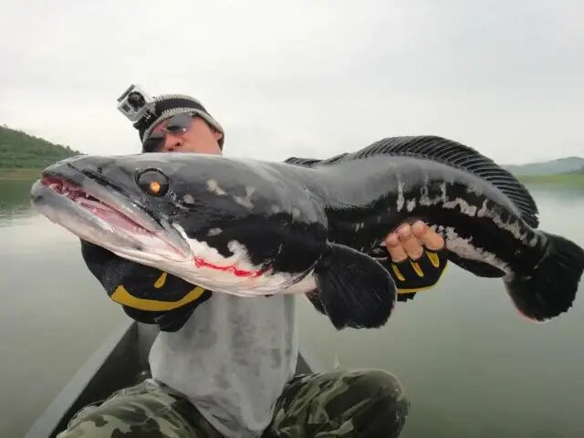 在美国,人们觉得大多数淡水鱼都不好吃,或者也可以说他们并不太会吃,这就导致很多外来入侵的淡水鱼类在美国泛滥,蛇头鱼就是其中之一。蛇头鱼学名乌鳢,属于攀鲈亚目鳢科鳢属鱼类。乌鳢鱼如其名,它们的身体呈灰黑色,体型修长,前端呈圆筒状,后部略扁,身体两边有不规则黑色斑纹。因为它们的吻部短圆,看上去就像是蛇头一样,在水中游动时活似水蛇,所以在我国也被叫做蛇头鱼。蛇头鱼是一种吃肉的大型淡水凶鱼,它们喜欢生活在江河湖泊底部,狩猎时潜伏在杂乱的水草中,趁机偷袭捕获猎物。它们的食性非常广泛,小鱼小虾,其他鱼类的仔鱼,水中的昆虫等等,只要是肉就逃不过它们的嘴巴。蛇头鱼原产自亚洲,在我国各地分布广泛,黑鱼、乌鱼、文鱼、才鱼等都是它们的名字。