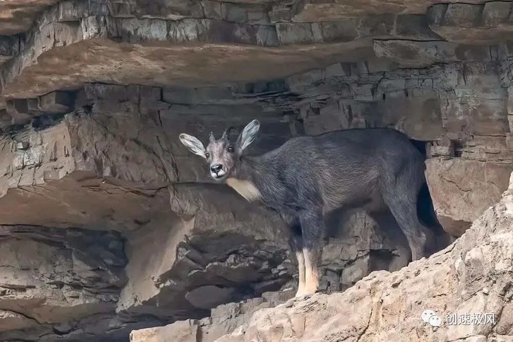 它的耳朵和尾巴像驴,羊角短而朝后弯曲,四蹄却像牛,斑羚幼崽的头顶还有一撮黑色的鬃毛,看上去非常可爱滑稽。一般野生中华斑羚的寿命大概是10-15年,人工饲养的寿命会更长一些。可惜的是,这张“西山之怪兽”的照片竟是人们最后一次看到中华斑羚,此后我国境内就再也没有发现过它的踪迹。就在今年,它们像奇迹一般出现在了人们视野里,除了北京,在青海海北和浙江丽水都有人抓拍到了中华斑羚的身影。