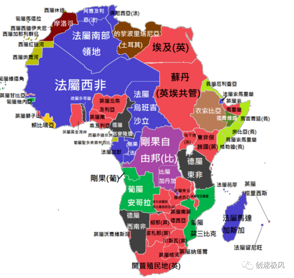 由于上面说到的,非洲人民倾心于“大自然的馈赠”,社会发展较晚,当他们形成初步的社会群落时,欧洲已经进入了工业化时代,这时候欧洲大肆扩张领地,非洲当然也是其中之一,使用弓箭作为主要的武器的非洲,在大舰巨炮的“降维打击”下,很快沦为了各国的殖民地。