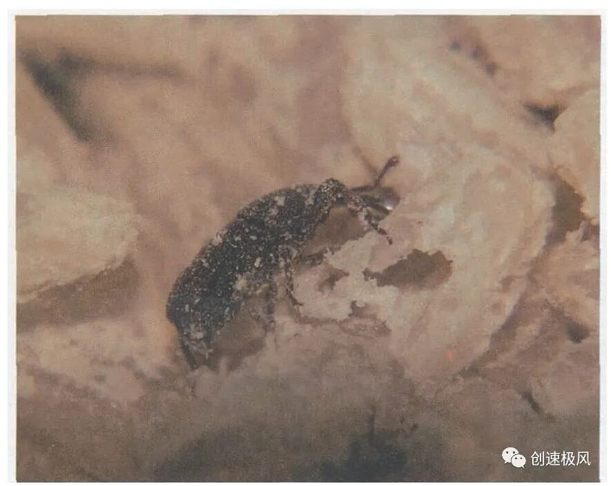 米虫的一生虽然极为短暂,但是依然逃不脱从卵、幼虫、蛹到成虫的复杂蜕变。我们经常在墙壁上、地板上、米袋里看到的,会飞的黑色虫子,是它的成虫。一般长2.5-3.5毫米,多半是红褐色或者黑色。它有酷似象鼻的口器,大概1毫米。放大后仔细观察它,活脱脱是一头迷你版的“大象”。故而,被称为米象。一般而言,成虫比较明显。在米面加工的过程中,很容易被发现和杀死。