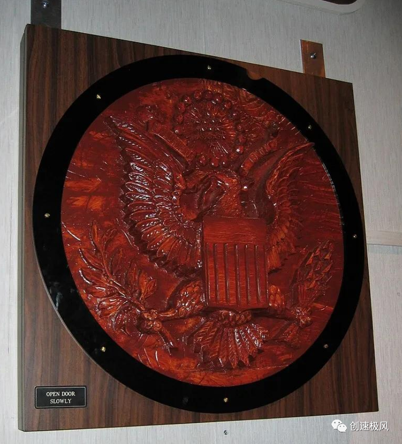苏联情报局这边接到任务后,接连尝试了好几种方法,从出动苏联美女特工,再到利用火灾,进入大使馆的办公室里,结果都以失败告终。后来,还是有人提议,将窃听器装在礼物里,直接送给哈里曼。这个提议得到一致同意,很快,一个特制的美国国徽做好了,窃听器安装在国徽里,就像一粒灰尘那么小,根本不会被注意到,苏联学生在一个开营典礼上,光明正大地送给了哈里曼。苏联还在办公室的外面架设了高强度的雷达,最终,这枚国徽放在办公室里七年之久才被发现。