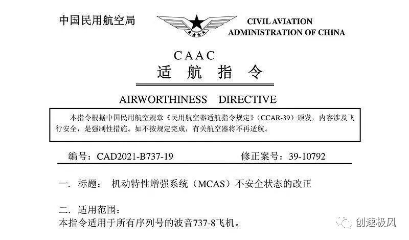这一适航指令的发布标志着在中国,波音737MAX的不安全状态就此解除,在航行相关的法律规定上,这一机型已经不具备任何复飞的障碍了。就像一个因为危险驾驶被吊销执照的司机,只要重新考试就能再次“上路”了。