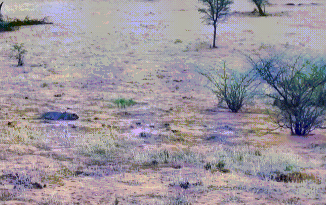这条心大的棕鬣狗起先只看到一头埋伏的母狮,在逃跑过程中还停下来回头看。发现身后跟着的是四头母狮后,它更加慌不择路,数次差点落入母狮的包围圈。可惜棕鬣狗拼了命逃,还是抵不住“世仇”的追击,最终被母狮围堵在了山坡上。