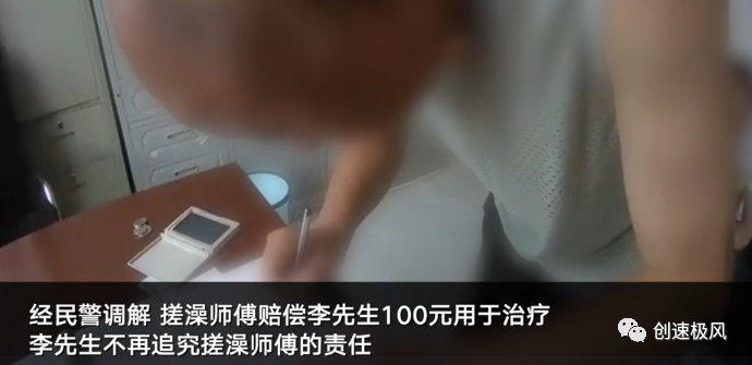 “太疼啦”!2020年8月,辽宁本溪市接到一个报警电话,李先生在电话中惨叫,吓坏警察。本以为是紧急案情,没想到,只是搓澡破皮。李先生作为一个南方人,兴致冲冲地来到东北,感受搓澡文化。没成想,搓澡师傅把手轻轻往背上一搭,李先生就感觉到火辣辣的疼。经过检查,李先生的小腿出现了破皮、出血等现象。协商之下,搓澡师傅赔了100元作为治疗费。