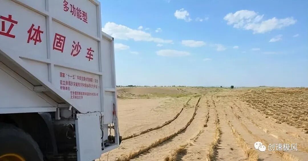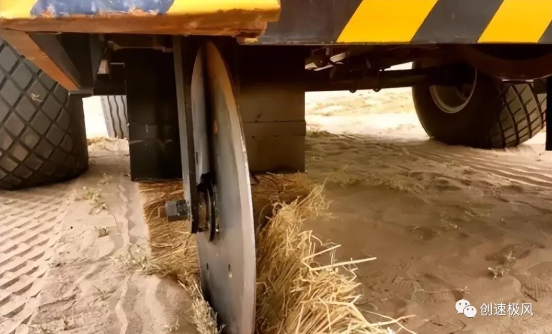 接着使用它的滚盘把稻草压入沙里25厘米以下,25厘米深度也是工作人员精细计算之后设定好的。原本人力固定草方格一天干不了多少,一台多功能立体固沙车一天就能完成40亩沙漠的治理,大大提高了治沙的工作效率。