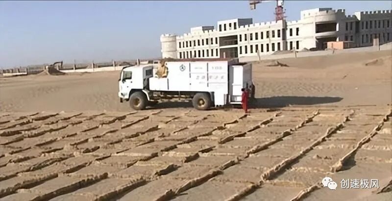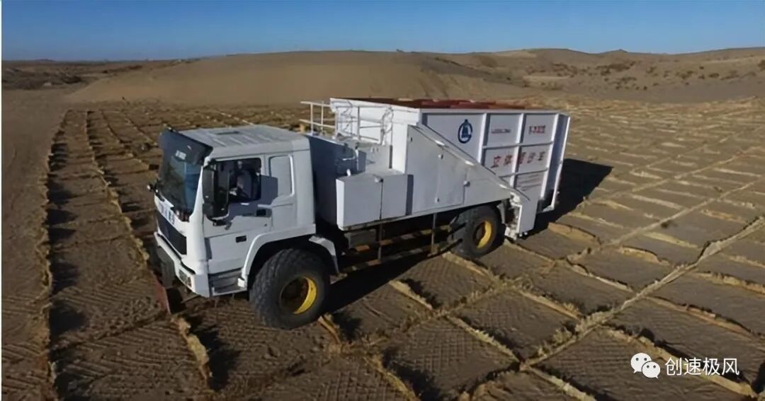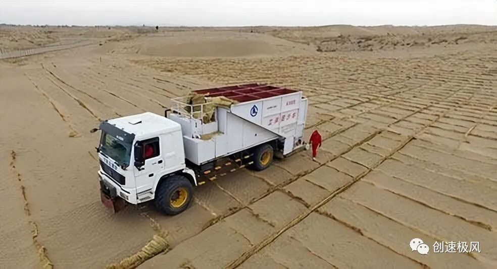 虽然多功能立体固沙车是机械化产物,但其实可以说它是在人工“草方格”的基础上升级得来的。