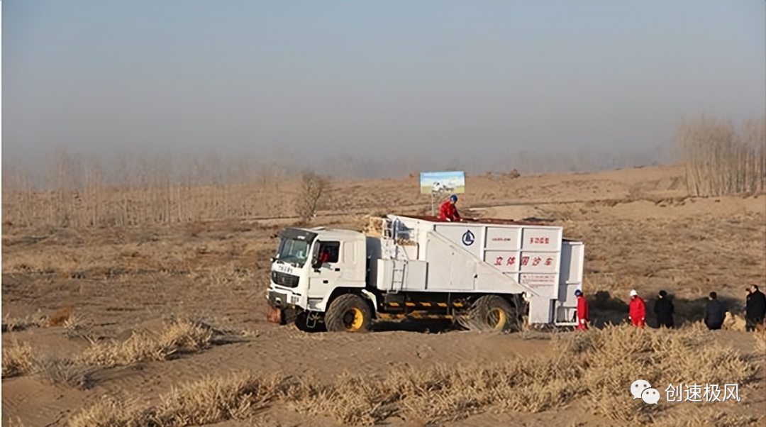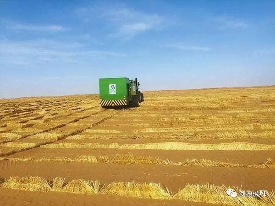 它行走在沙漠之中,一天就能完成40亩沙漠的治理,目前已在甘肃等多地投入使用。