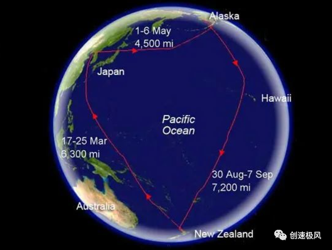 2020年9月28日,一只5个多月大的小鸟脱离父母保护,成功从阿拉斯加冻原迁徙至澳大利亚塔斯马尼亚岛的越冬点过冬。它在连续11天零1个小时里,不吃不喝不睡飞行了近13500公里,即便要跨越凶险的太平洋,这只小鸟也没有停下来休息。