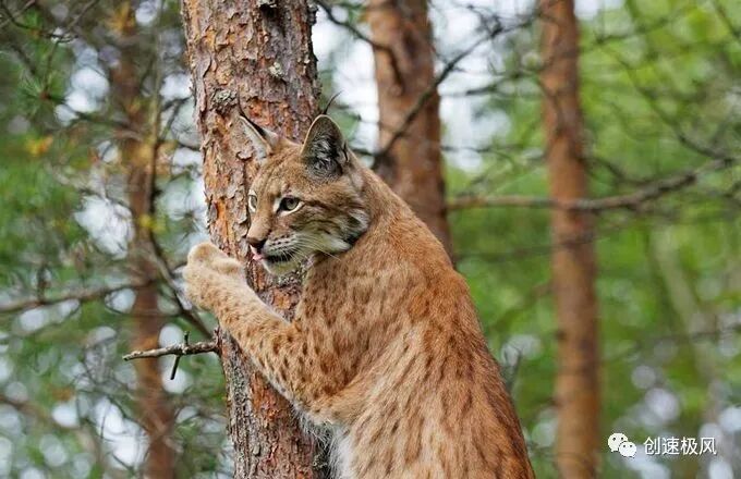 猞猁在我国又被称为“山猫”、“大猫”,它的外型和缅因猫非常相似,属于中型猛兽,体重一般在20-30公斤。和其他猫科动物不同的是,猞猁健壮的体型搭配着修长的四肢,尤其是行走时后腿无法伸直。因此它的跳跃攀爬能力惊人,可以从一棵树纵跳到另一棵树捕食鸟类,还能在倒木横生、环境复杂的密林中悄无声息地埋伏猎食。
