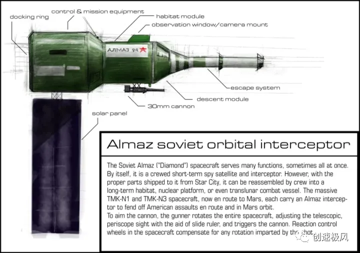而且,这个加农炮被固定在了空间站下方无法调转方向,只能靠转动空间站的方向调整射击角度,这让发射以后的空间站会被推到哪个方向变得更不确定。基于这种考虑,苏立案方面放弃了让宇航员在空间站里发射大炮的想法,改为从地下指挥部控制发射。果然,当加农炮一下子射出20枚炮弹后,产生了一个非常强大的后坐力,空间站就像是原本处于浅海的小孩一样,被海浪一下子席卷着往“深海”而去。好在指挥部立即将空间站的姿态和高度维持变成了hard模式,最终花了很长时间才稳定回到近地面轨道。