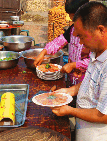 哪怕就算酒席上面的猪肉、鸡肉、鱼肉等,村里买不到,要去到农贸市场挑选,也基本出自附近村庄,现杀现卖,不用担心出问题。