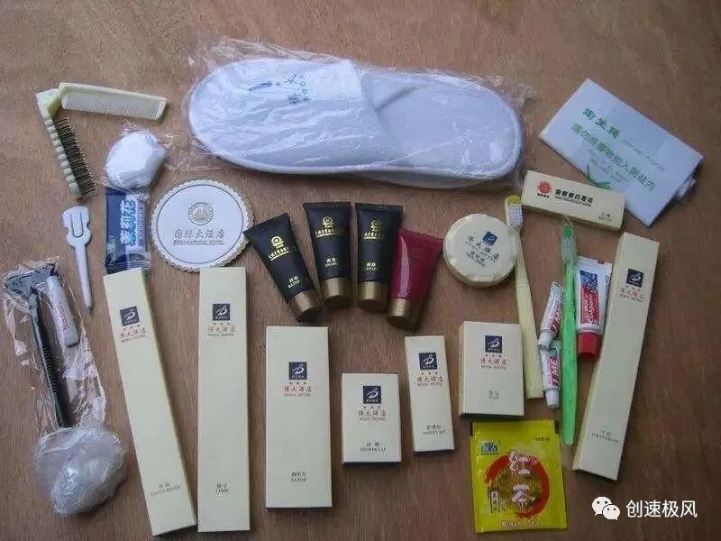 一次性牙刷、牙膏、拖鞋、沐浴露、梳子、洗发液是连锁酒店必备的“小六件”。早期,这还是检验一个酒店是否高级的标准之一。不少人在住完酒店之后,还会把这些没有拆封的“小六件”带走,回家继续“一次性”。其中,拖鞋和牙刷常年是住店者最爱带走的宝贝,常年占据“小六件”中最受欢迎榜的前两名。 正是酒店对于一次性产品的狂热采购,带动了旅行一次性产品的热潮。从这六样东西开始,不少人抓住了出差旅行一次性产品的商机。只要是出门会带的东西,大多数都有其一次性的替代产品。