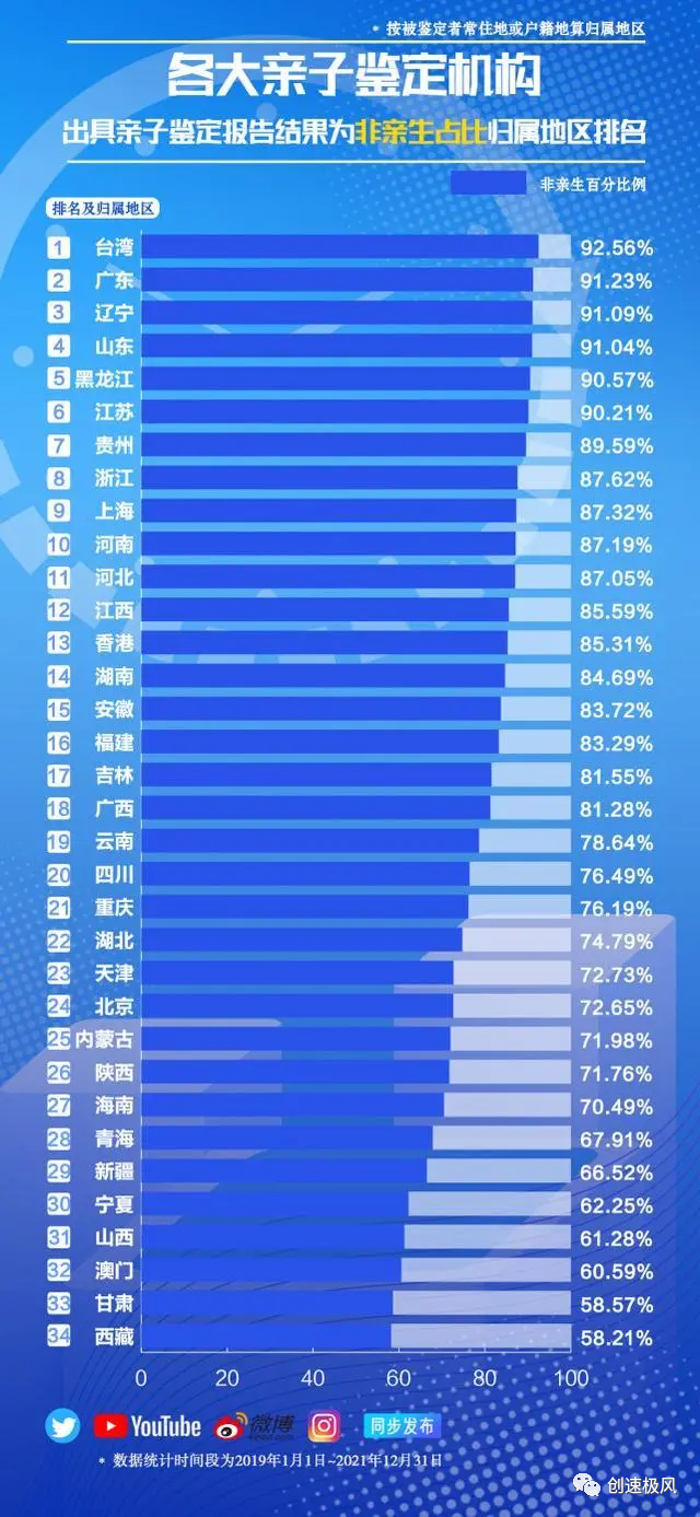 同样离谱的还有德国,2006年以前,有4万多名男性隐瞒伴侣,私自做亲子鉴定,其中有20%不是亲生父子关系。根据调查,93%的男性认为,如果不是自己的亲生孩子,那么他就不会要,也不想养。为了家庭和睦,2009年德国也禁止了秘密进行亲子鉴定。 而在我国,数据更离谱。目前,我国做亲子鉴定的数量正在以每年20%的速度递增。在广东、浙江等地,甚至在以40%-50%的速度激增。一本杂志曾经统计过,在所有亲子鉴定报告结果中,每个省非亲生的比例都高于50%,真是让人惊掉下巴。