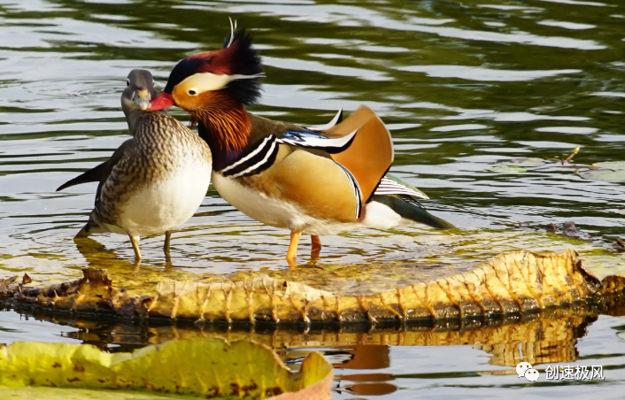我们来了解一下鸳鸯,鸳鸯是雁形目鸭科鸳鸯属的中型游禽,鸳指雄鸟,鸯指雌鸟。它还是一种雌雄异色的鸟,雄鸟羽色鲜艳而华丽,头顶冠羽,雌鸟羽毛基本是灰褐色,对比十分明显。绝大多数人都是在公园、池塘等地看到过鸳鸯,但实际上它们的飞行能力是非常强的,接近于大雁。鸳鸯还是一种候鸟,每年9-10月离开繁殖地南迁过冬,等到翌年3-4月再陆续飞回繁殖地。