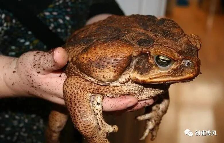 这只“蟾斯拉”是一种叫做海蟾蜍的大蛤蟆,完整的学名叫“巨型海蟾蜍”,从名字就能听出来,它的特点就是体型大,体长平均在10-17厘米之间,是世界上最大的一种蟾蜍。