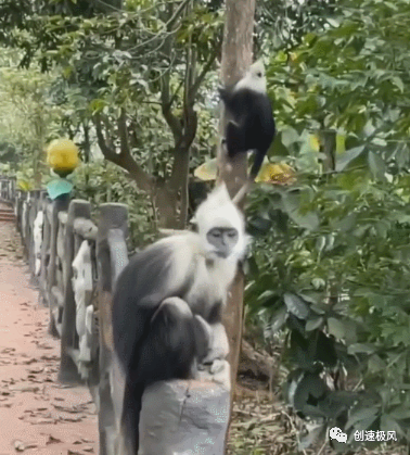 “脆弱”的白头叶猴幼崽,差点在树枝上被弹飞