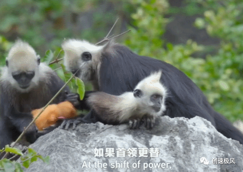 虽然看起来是一雄多雌的制度,但其实白头叶猴的家族群属于母系社会,因为只有雌性可以一直生活在同一个家族里,就算是幼崽们,长大之后也只有雌性才能留下来。因此,白头叶猴族群的真正基础,其实是雌性。