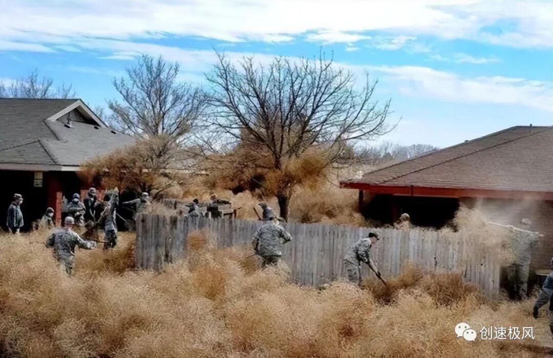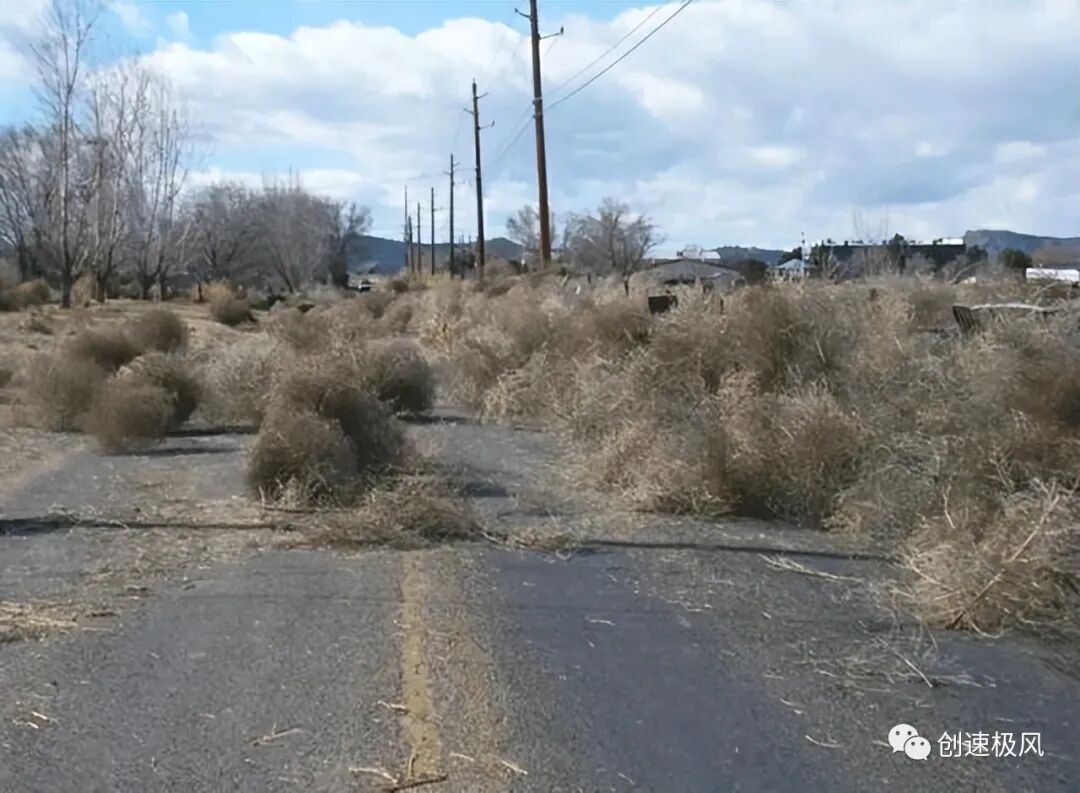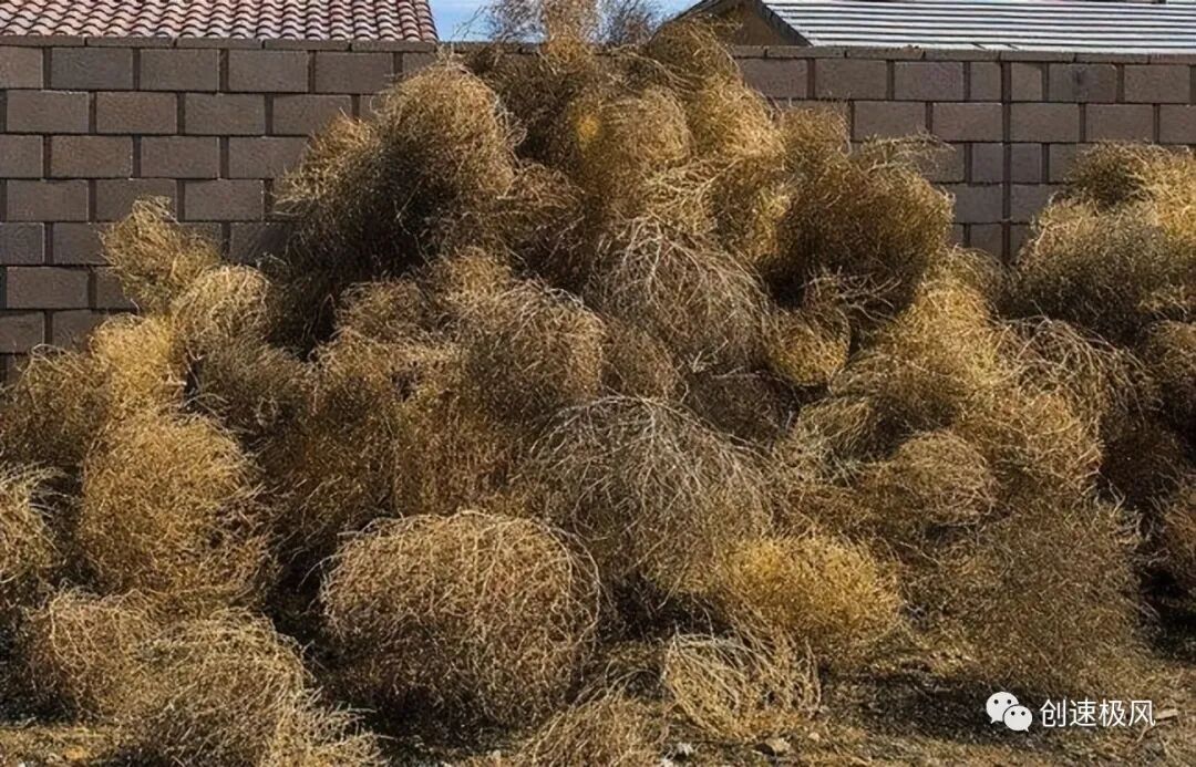 这种草并不是美国原本就有的,属于是外来入侵物种,是19世纪70年代从俄罗斯带入美国的,截止到2019年,风滚草已经入侵了美国的48个州;在2018年,有100多户房屋完全被风滚草掩埋,美国政府投入了大量的人力物力财力去整治这种草,也是收效甚微。