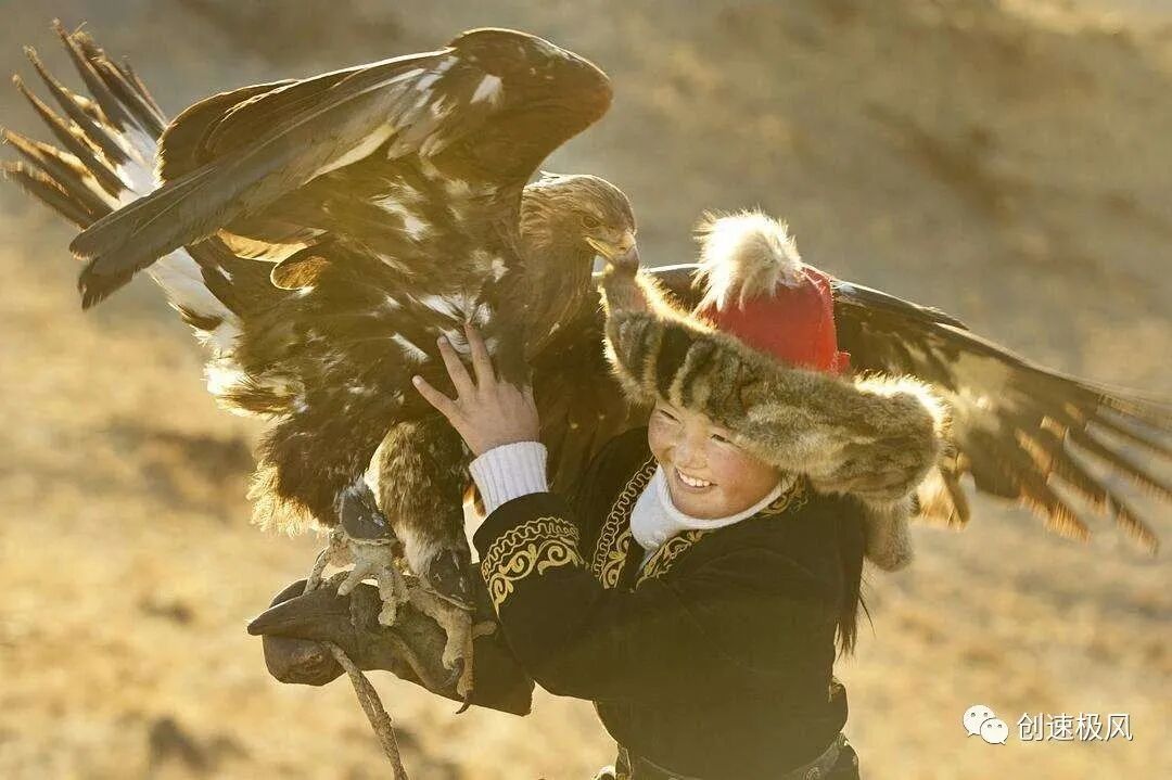 蒙古国有名的女驯鹰人,13岁就驯服了一只金雕