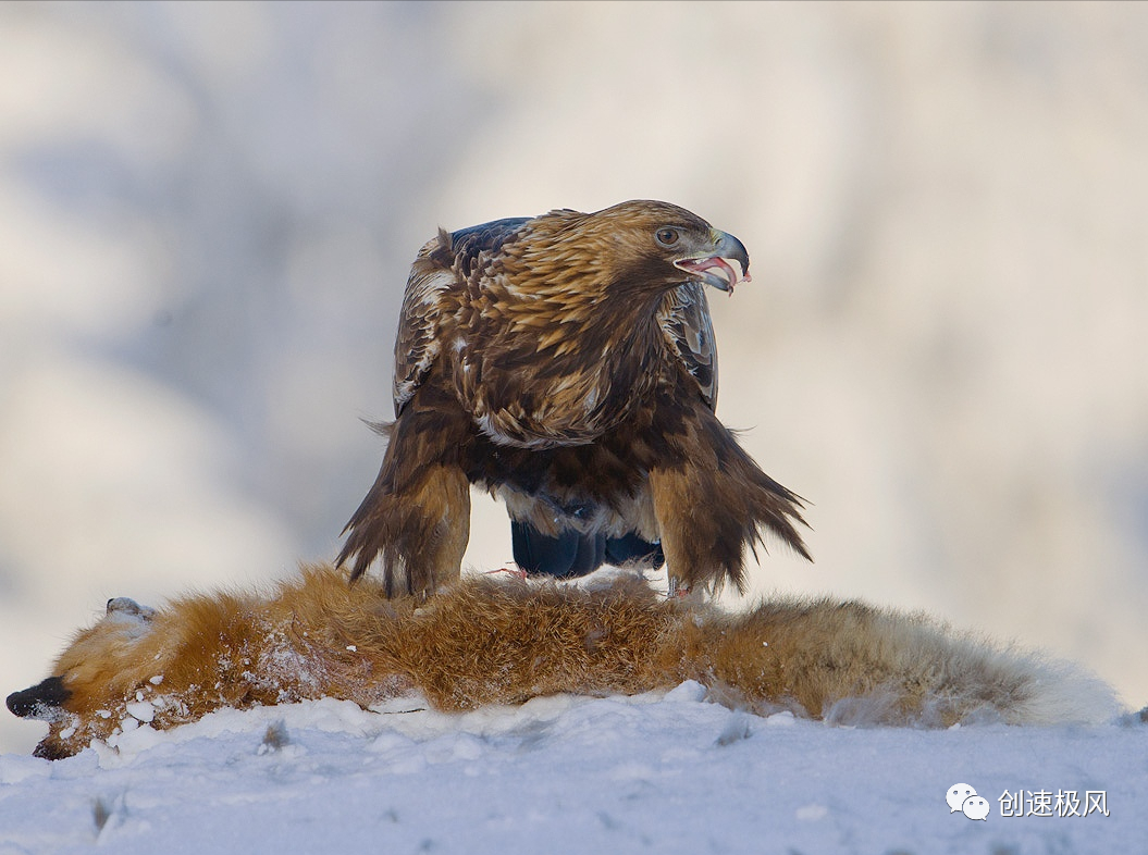 还有一点,金雕在野外的时候本来就饮食不规律,就算是顶级猎食者,也不能做到天天都有肉吃,于是,金雕在一次成功的捕猎之后,会一口气吃下很多食物再慢慢消化,甚至能做到一星期不再进食。
