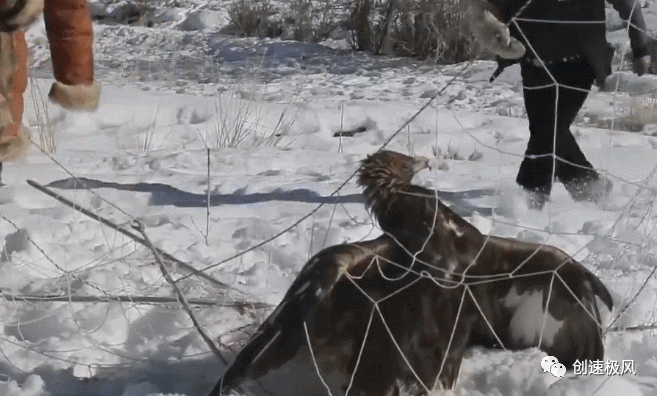 捕捉金雕的网也不是普通的捕鸟网,是用柔软的棉绳织成,这样才能保证金雕被缠住之后不会受伤。