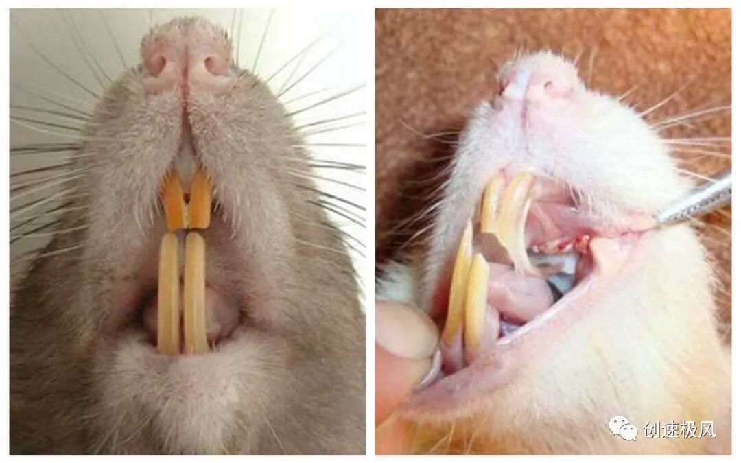 啮齿类动物最明显的特征,就是嘴里永远都在生长的大门牙。如果不经过磨牙或者修剪,大门牙就会越来越长,最后让动物不能进食活活饿死。