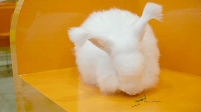 而兔子种类繁多,短毛的基本用剃刀或剪刀就可以了,长毛就没有那么幸运了,其中,深受其害的当属安哥拉长毛兔。 安哥拉长毛兔是世界著名的毛用型品种,最初被认为起源于土耳其的安哥拉省,后来经调查才证实,是英国的品种,被多国引进繁育,成为一个庞大的品系。 安哥拉长毛兔的特点就是毛发浓密细长,一只兔子年产毛量可达1190克~2000克。并且,脸部耳朵都能长毛,当毛发遮住眼睛,俨然是一个毛茸茸的玩具,异常可爱,深受人们喜欢。