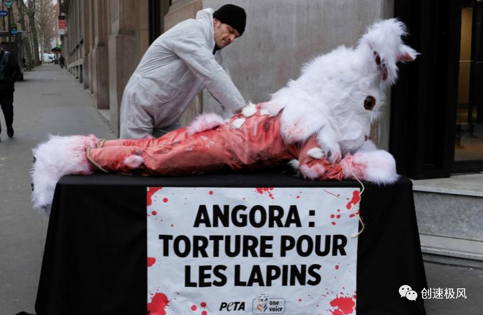 可以说兔子浑身是宝,可如果没有活拔兔毛,那还能心安理得地穿着兔毛大衣,戴着柔软的兔毛围脖,做个精致的兔兔女孩。奈何爆出来后,心里难免会产生一丝膈应。 2017年2月9日,法国巴黎的街头还举行了抗议活动,表达了对活拔兔毛的愤怒。现场志愿者身着染血兔装,麻木地躺在桌子上,等待工人扮演者演示拔毛操作,过程看得人揪心