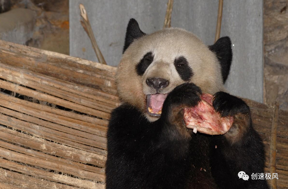 而曾经它也是吃肉动物,上能抓鼠捕鸟,下能捞鱼捉虾,就算换成现在,也会捕食小动物来打打牙祭。2010年,四川就发生过野生大大熊猫闯入猪圈,吃了好几斤的肉骨头的事情。 而大熊猫也有着十分强悍的咬合力,这得益于它那一排排锋利的牙齿。它的咬合力为1298.7N,断齿的咬合力也在1851.9N,在猛兽中属于季军,与狮子老虎相差无几。