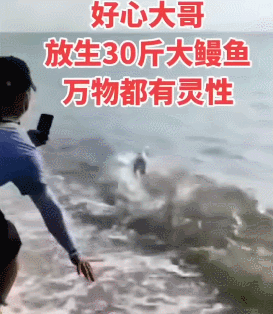 海鳗没有鳞片的皮肤骤然接触海水,因为受不了环境骤变的刺激,出现了强烈的应激反应,在水面上不停挣扎,放生者却说这是它有灵性知道感恩。
