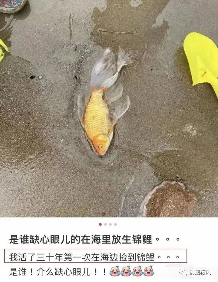 被放生后死在海滩上的锦鲤