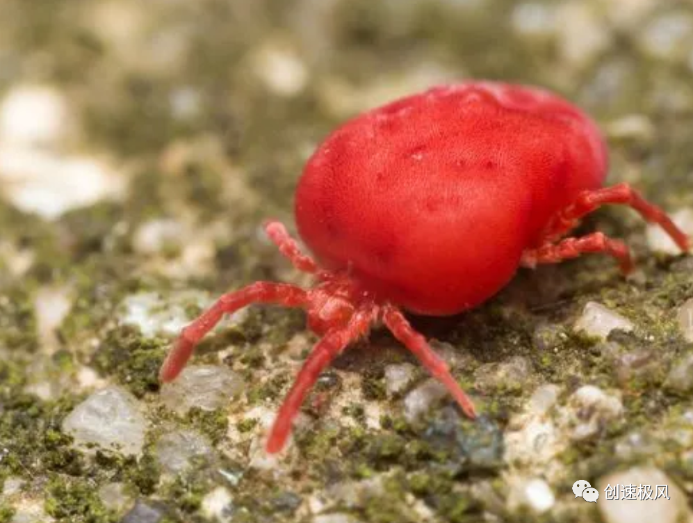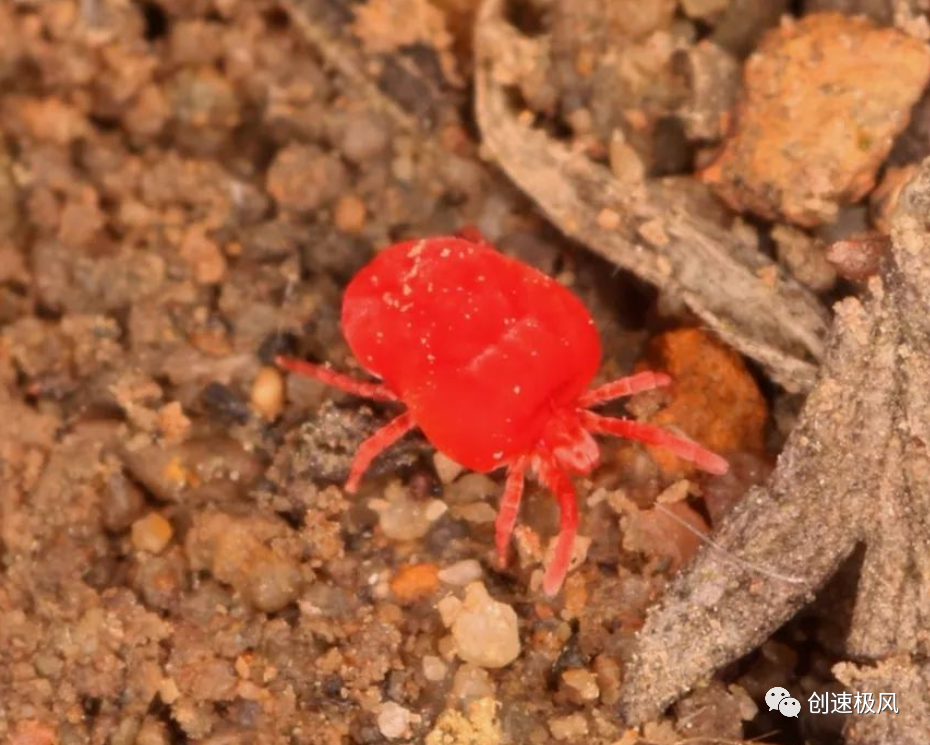 说水泥螨或许不太准确,这种八只脚,神似小红蜘蛛的虫子其实是赤螨科中的一种,在全世界范围内都有广泛分布。水泥螨多为褐红色、深红色甚至是鲜红色,仔细看的话还有刚毛,乍一看很像是小蜘蛛,但它们不仅和蜘蛛没什么关系,许多赤螨科的幼螨还是一些昆虫和蜘蛛等节肢动物的外寄生物,算是蜘蛛的天敌之一。