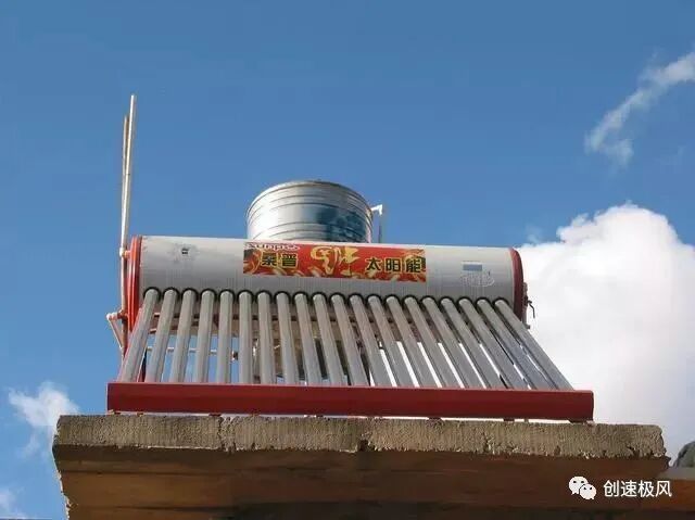 而且当时对于能源匮乏和条件落后的农村来说,太阳能热水器确实也是首选,太阳能热水器的结构很简单,就是由大量的真空管和蓄水箱组成,面向阳光摆放就可使用。一次可以还可以同事装上好几个水箱,只要有太阳照射就能用上热水,可以说是非常实用且方便。