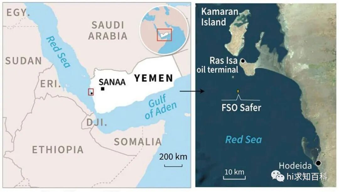 2022年5月9日,联合国国际海事组织发布一条警讯,称停泊在也门海岸线附近的油轮FSO SAFER号,存在巨大的解体风险。如果发生解体或者出现裂缝,都将导致船上储存的超过110万桶原油泄漏,到时将造成巨大的海洋生态灾难,因此产生的治理费用或将超过200亿美元。