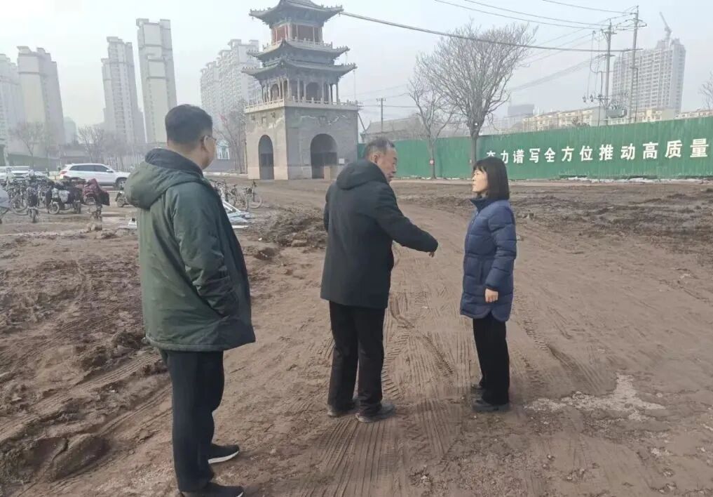 街道党工委委员、人大工委主任、工会主席王小萍协调解决菜市北街道路泥泞问题,检点昕锦菀商业综合体及公共地下停车场施工进度和施工安全。